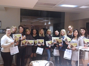 3 декабря началась «познавательная» программа: косметологи отправились в тренинг-центр Académie Scientifique de Beauté. Целый день французские бизнес-тренеры читали лекции и демонстрировали новые средства линии природной косметики Aromathérapie. Процедуры Aromathérapie основаны на действии средств и ароматов растений Франции и подходят не только прекрасному полу, это и доказали специалисты Académie, демонстрируя некоторые ритуалы на моделях-мужчинах. Все участники тренинга получили сертификат «Aromathérapie-тренинг», подтверждающий, что они могут применять косметику этой линии с полным знанием дела.